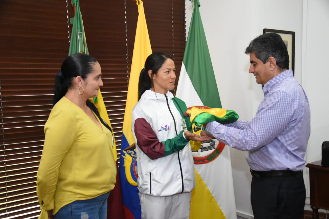 GOBERNADOR ENTREGÓ LA BANDERA DEL DEPARTAMENTO A LINA RAGA COMO REPRESENTANTE DE LA DELEGACIÓN QUE IRÁ A LOS JUEGOS NACIONALES 2019