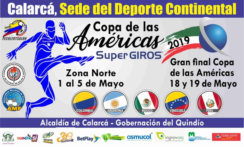 Desde el próximo miércoles 1 de mayo, se vivirá en Calarcá la edición 2019 de la Copa de las Américas de fútbol de salón zona norte, un evento liderado por el equipo Caciques a través de su gerente Giovanni Galindo y apoyado por la gobernación del Quindío.En el coliseo del Sur de la Villa del Cacique se verán las caras elencos de Argentina, México, Venezuela, Perú y por supuesto Colombia representada por el campeón intercontinental Caciques del Quindío.Los encuentros se disputarán hasta el domingo 5 de mayo cuando se conocerán quienes ocuparán el primero y segundo lugar y se enfrentarán a Estudiantil Porte?o y al Club Cementista que se ubicaron primero y segundo respectivamente en la zona sur.La gerente de Indeportes Quindío Olga Lucía Fernández Cárdenas se?aló que se le ha venido brindando todo el apoyo al equipo Caciques para el desarrollo de este evento internacional tan importante para el departamento.“Queremos invitar a toda la comunidad a que se vincule a este espectáculo deportivo donde se espera un acompa?amiento masivo y apoyo al equipo local que ojalá clasifique a la gran final”, expresó.Dijo que es Giovanni Galindo quien hace la gestión ante la federación de la disciplina contando con todo el respaldo del gobernador de los quindianos Carlos Eduardo Osorio Buriticá, haciendo posible desarrollar eventos de gran envergadura en el departamento, consolidándolo como una potencia en la realización de actividades nacionales e internacionales.“Es además una gran oportunidad para abrir espacios a las nuevas generaciones de quienes vienen en esos procesos de iniciación deportiva para seguir los pasos por ejemplo de Kevin Pineda quien ya hace parte de la selección Colombia de la disciplina”, agregó.Precisó que así mismo son actividades que permiten la activación económica en una temporada baja para el turismo con la visita de cinco delegaciones que aportan a la hotelería y demás sectores que se mueven alrededor de un evento de esta talla.