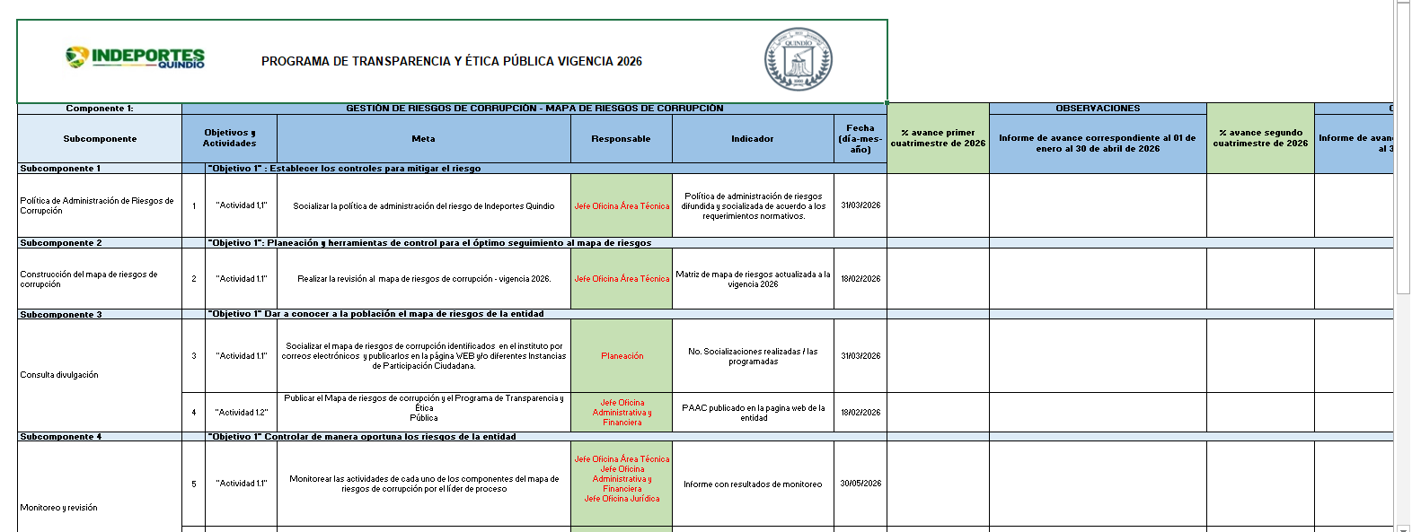 MATRIZ DEL PROGRAMA DE TRANSPARENCIA Y ÉTICA PÚBLICA - PTEP VIGENCIA 2026